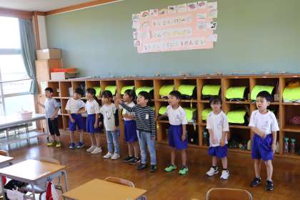 1年朝の会 ゴーゴーゴー!