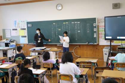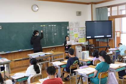 1限、3年生は道徳で「四人五きゃく」の学習。