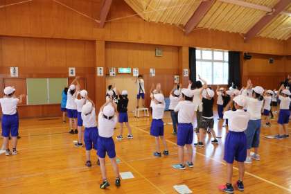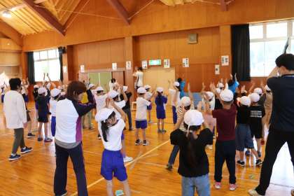 全校応援練習 白組「三三七拍子」