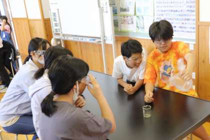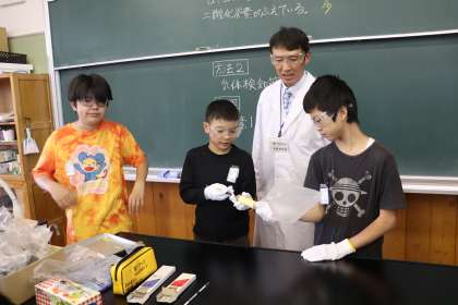 児童の予想は「酸素の割合が減って、二酸化炭素の割合が増える」でした。