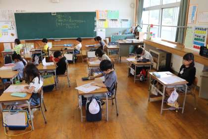 4限、2年生は算数で「たし算のひっ算」のテスト。