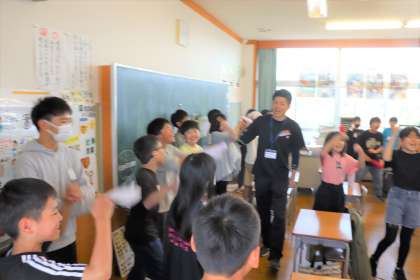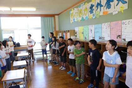 朝の会、5年6年は合同でゴーゴーゴーを歌っていました。