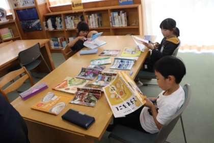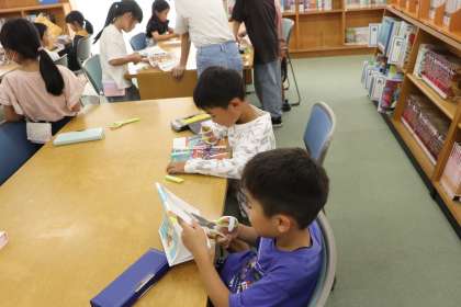 昼休み、図書委員会によるイベント「しおり作り」がありました。