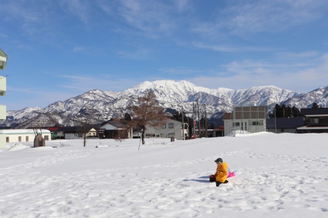グラウンドの雪は堅くなり、凍み渡り(しみわたり)、そりなどを楽しんでいました。