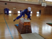5限、6年生で「アルペンスキーワックス作業」が終わった児童から、自主的に玄関前の除雪作業をやっていました。