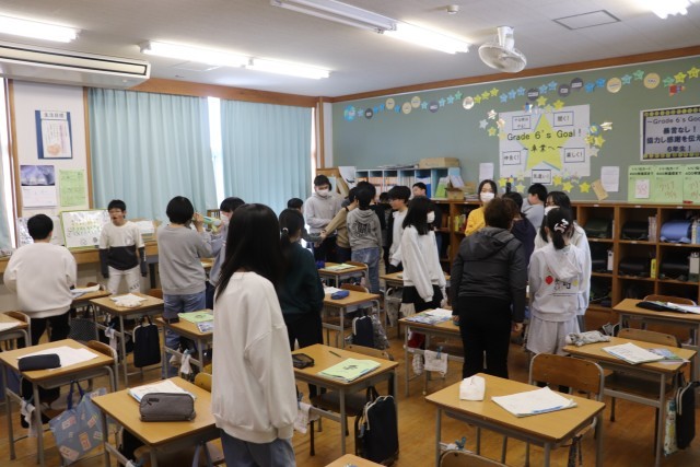 2人組になり、“What club do you want to join?”と英語で問うて、会話していました。