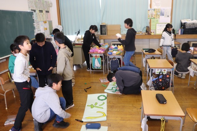 4限、5年生は総合で「六送会プロジェクト」の活動。