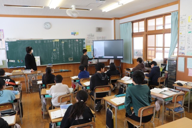 2限、4年生は国語で「調べたことをほうこくしよう」の学習。