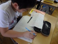 4年生の5時間目は図工の授業でした。「まぼろしの花」を描くという学習です。誰も見たことがない空想上の花を描きます。マインクラフト風の花や水の中で咲く花、宇宙で咲く花など1人1人が考えた花を描いていました。