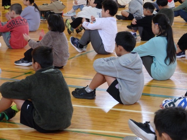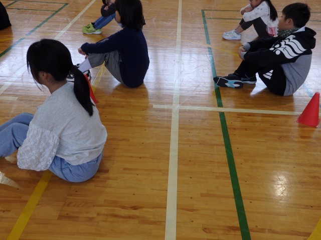 朝会で体育館に行くと、すでに1年生が並び終わって座って待っていました。整列一番乗りです。朝会後、またまた6年生が整列のための三角コーンを片付けてくれました。ありがとう!