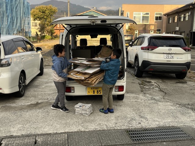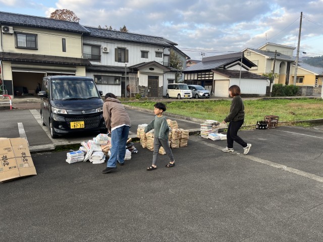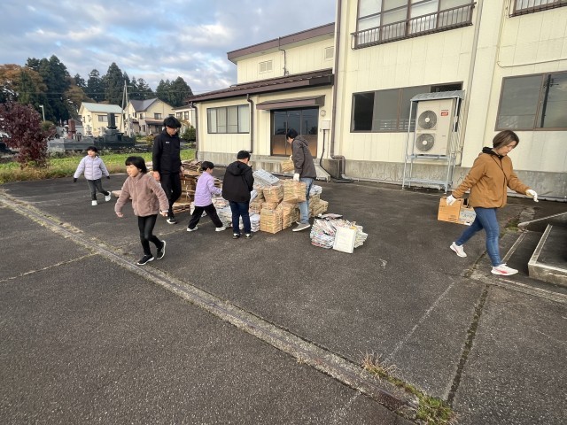 今日は資源物回収でした。保護者の皆様、朝早くからありがとうございました。子どもたちもお家の人と一緒に一生懸命回収物を運んでいました。四十日から野田方面はすでに作業が終わっていたため写真を撮ることができませんでした。すいません。欠の下から大杉地区の様子しかです。
