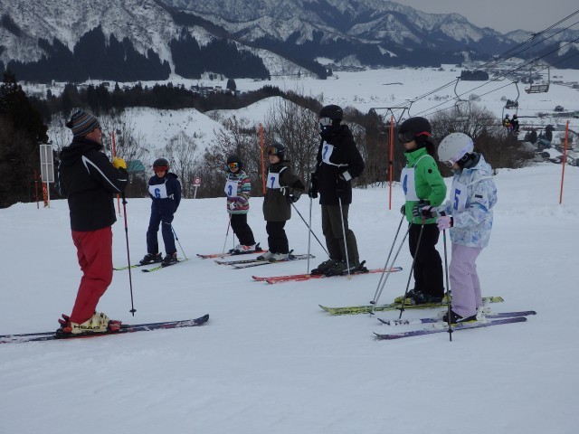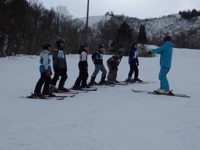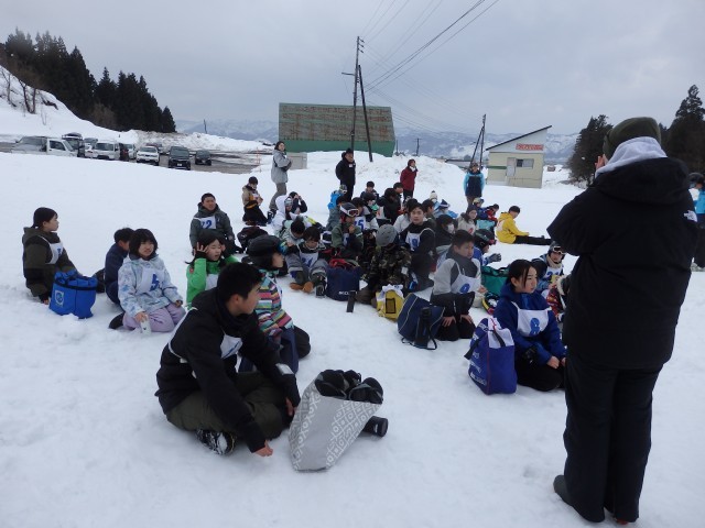 終了式です。思う存分滑ることができて「楽しかった!」と満足そうな顔、「まだ滑り足りない!」とウズウズしている顔と様々ですが、今週金曜日には2回目のスキー授業がありますよ。指導者の先生方とゲレンデに向かってあいさつをして、学校に戻ります。