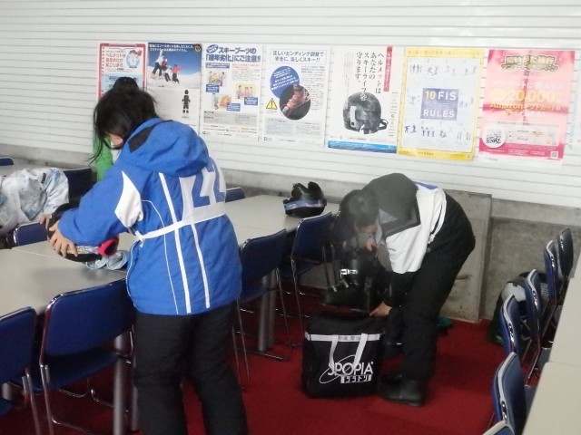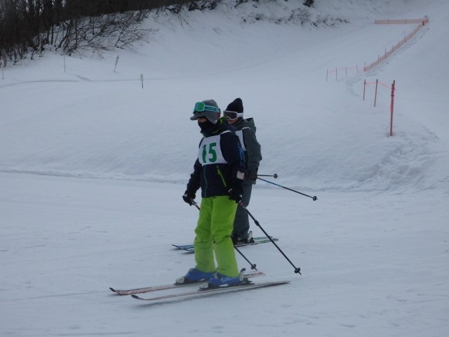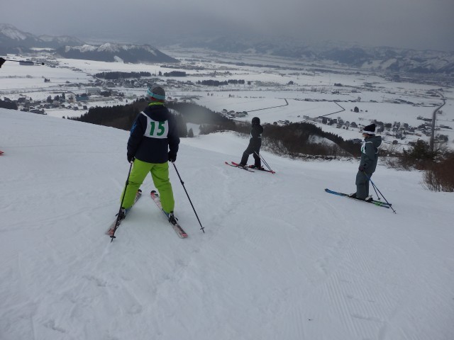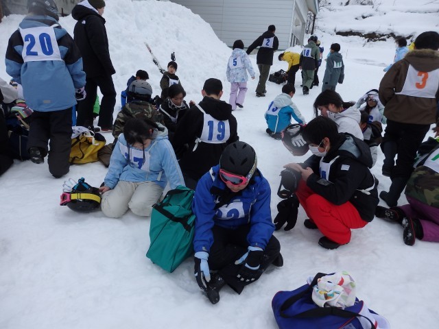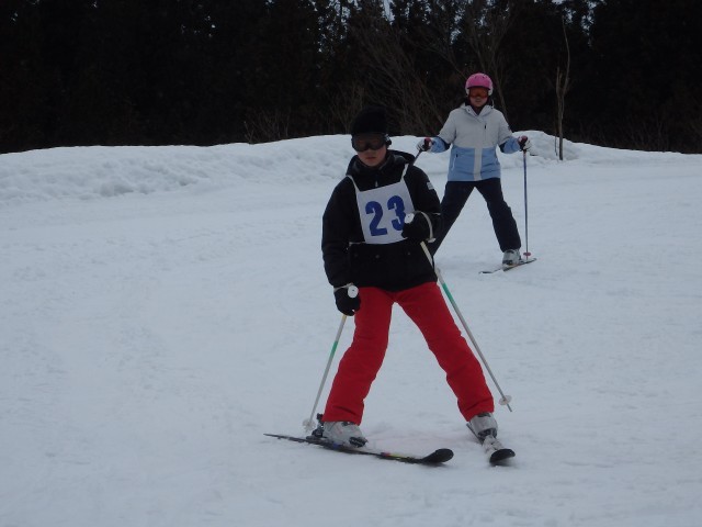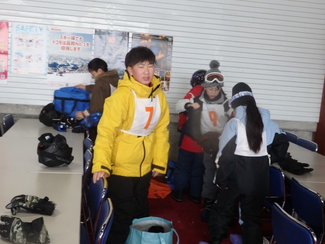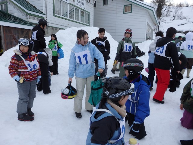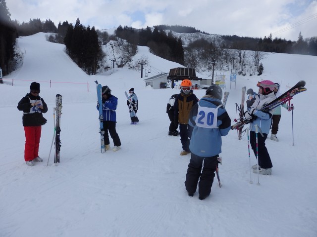 今日のレッスンは終了です。途中、少しだけ雨が降りましたが、気になるほどではなく快適にスキーができました。帰る準備をして終了式です。