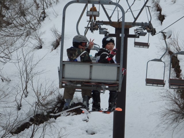 リフトの上からピース!その2(すいません。1枚かなりピンボケでした)