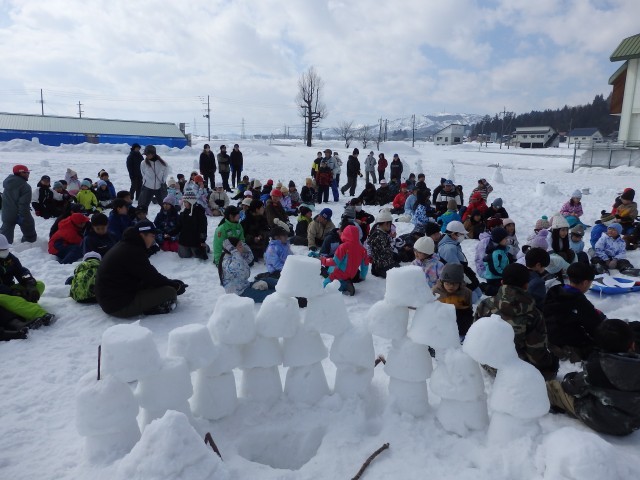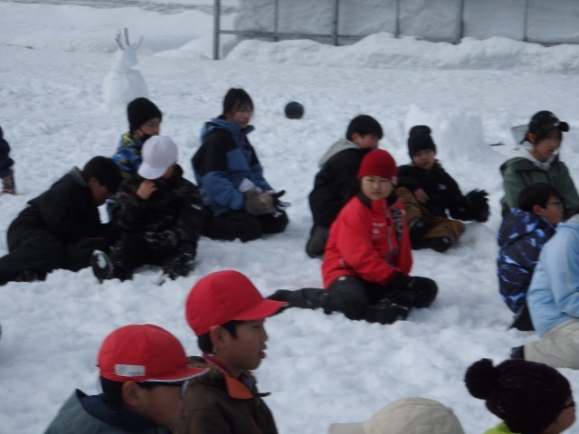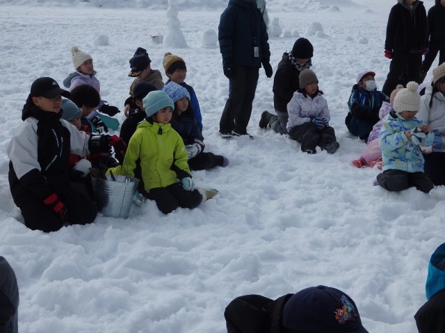スノーフェスティバルの閉会式です。閉会式後、作った雪像の「後片付け」です。我先にとダッシュして雪像の撤去作業をする子どもたちでした。