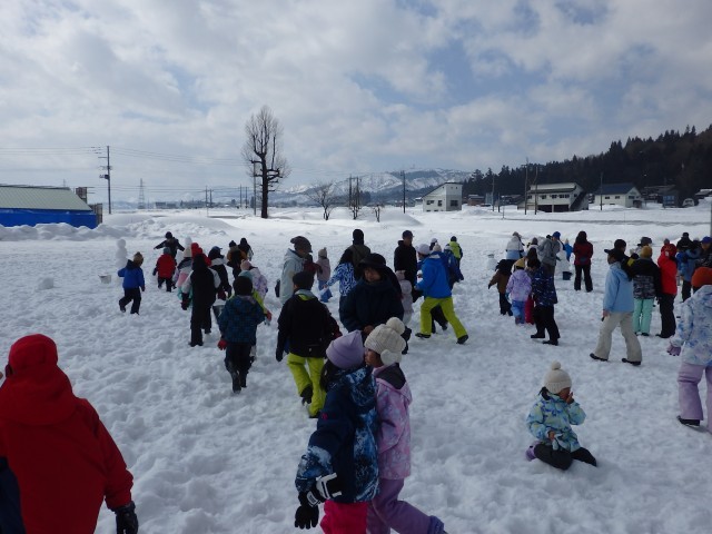 違う学年の人と協力し合うこと、一緒に楽しむこと、上学年の子が下学年の子を支えてあげること、それがこのスノーフェスティバルの目的です。いい姿がいっぱいありました。