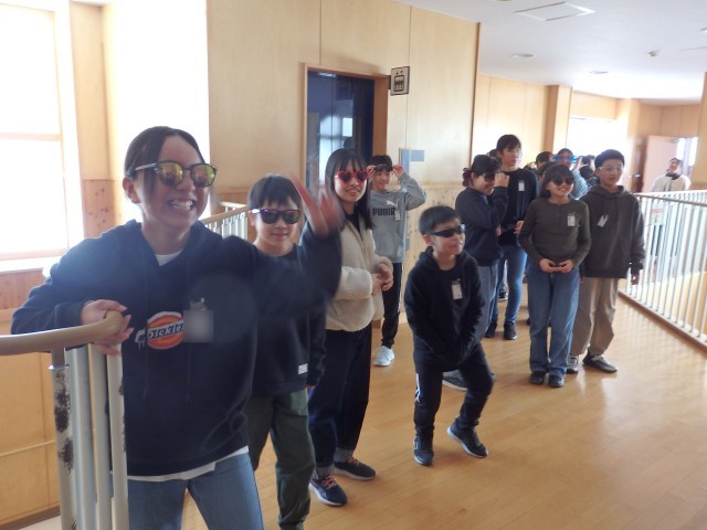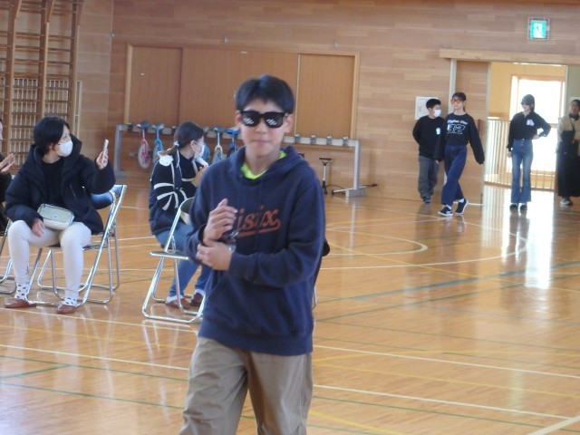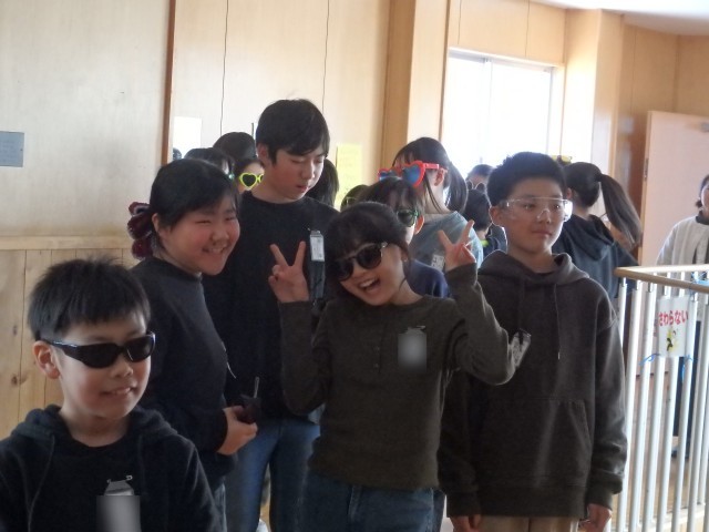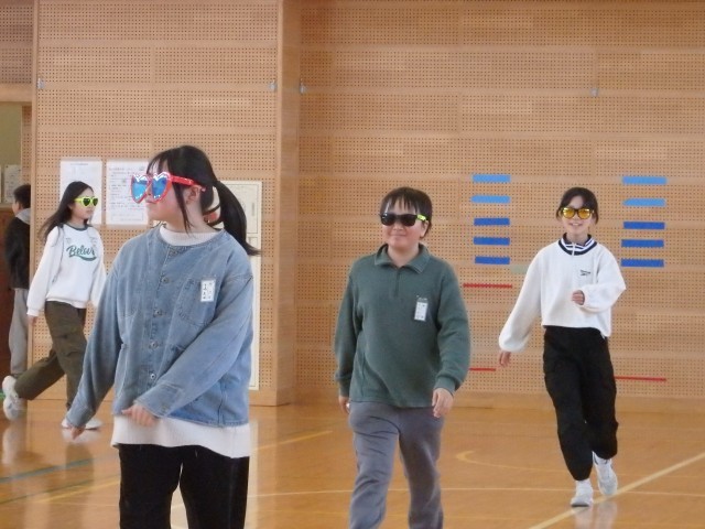 5時間目に「6年生を送る会」を行いました。入場を待つ6年生を見てビックリ!全員がサングラス着用でした。担任の先生の色が出ていますね。