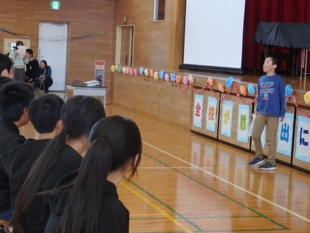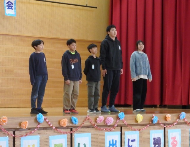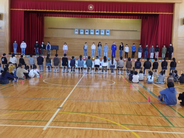 激励会の続きです。4年生が応援リーダーになって6年生へエールを送りました。そして、6年生の代表2名が「目標達成できるように頑張ってきます」と力強く、立派な決意表明をしてくれました。「チームおおまき」で一丸となって頑張ってほしいです。