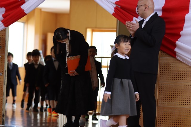 本日、第8回入学式を挙行いたしました。25名のかわいい新1年生を迎えました。校長式辞や来賓祝辞での「入学おめでとう」の言葉に元気よく「ありがとうございます!」と応えてくれた子どもたちでした。明日から友だちと、2~6年生のお兄さんお姉さんと、先生たちと仲良く協力して「笑顔いっぱい やる気いっぱい」な小学校生活を送ってほしいです。