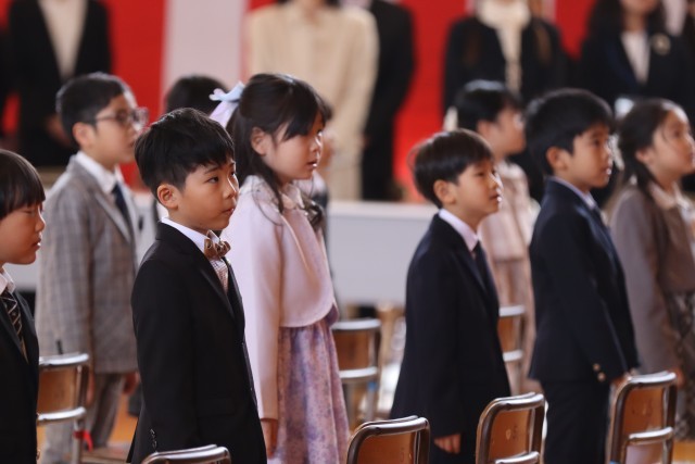 6年生はもちろんですが、1~5年生の在校生も姿勢がいいですね。背筋がピンと伸びています。初めての卒業式となる1年生でも緊張感をもって臨んでいます。