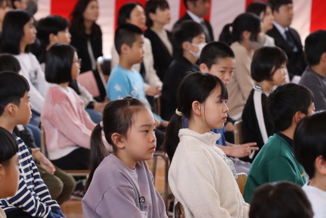 転出される先生方をまっすぐに見つめて、お話を聞く子どもたちです。