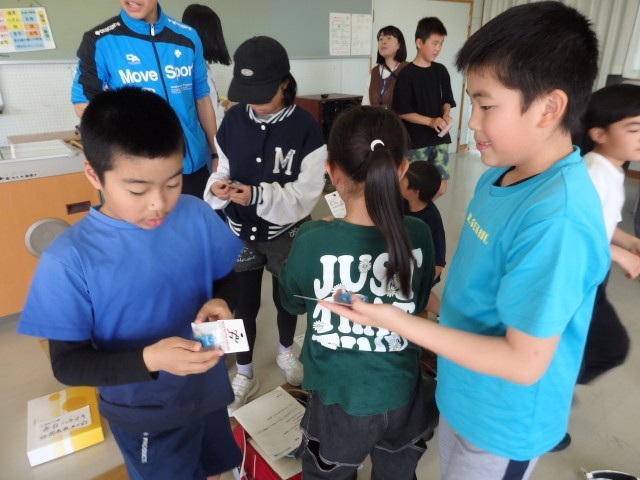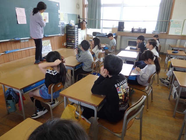 転出される先生との最後の学活です。子どもたちから手紙や花束が贈られたり、先生から子どもたち1人1人にメッセージが書かれた色紙が配られたりしていました。胸が熱くなります。他の学年でも転出される先生方へ手紙を書いていました。