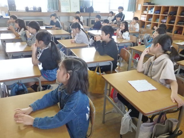 5時間目に地域児童会を行いました。1年生が自己紹介をしたり、登校班ごとで並び方や集合時間と場所、安全に登校できているかどうかなどについて確認しました。地域長、登校班長を中心に、安全に登校してほしいです。そして、登下校中に出会った地域の方にも元気なあいさつを心掛けてほしいです。