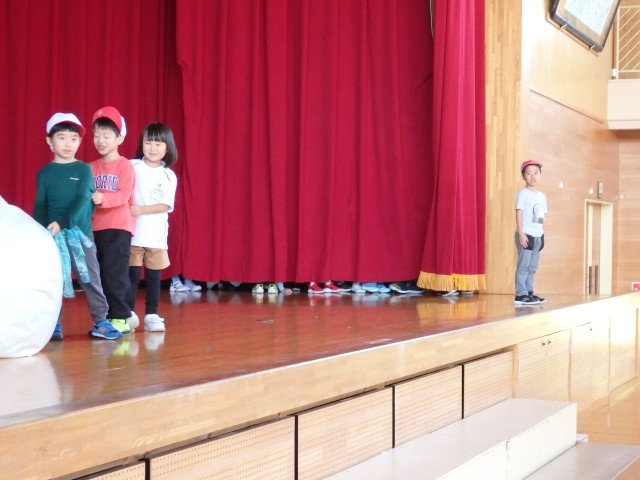 1年生は3時間目に学習発表会のステージ練習を行いました。「おおきなかぶ」場面ごとに分かれて劇をします。セリフを体育館の後ろの方まで聞こえるくらい大きな声で言える子が増えてきました。最後にみんなで歌を歌います。何を歌うのかは本番のお楽しみです。