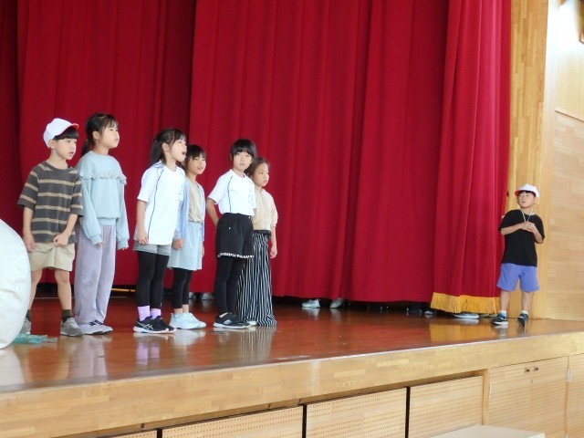 1年生の2時間目は学習発表会に向けて初めてのステージ練習を行いました。しかも1年生にとって大きな体育館のステージの上で劇をするのは初めてです。1つずつ担任の先生とセリフや動きの確認をしていきました。みんなで協力して練習に取り組んで、本番では笑顔で元気に堂々とした姿を見せて欲しいです。