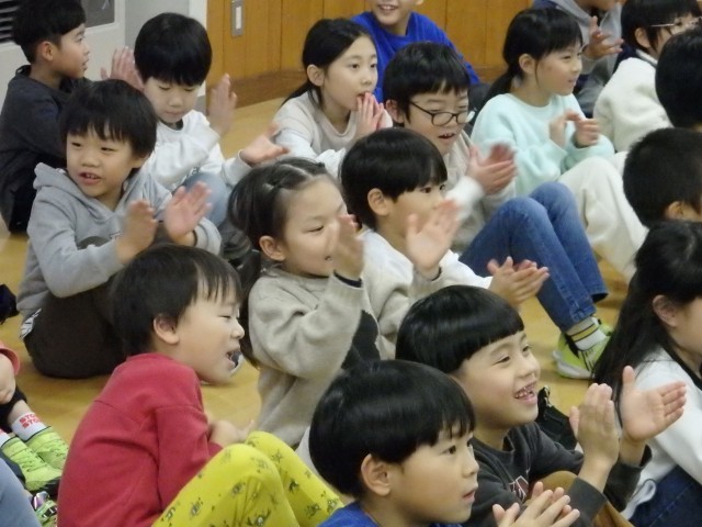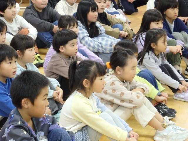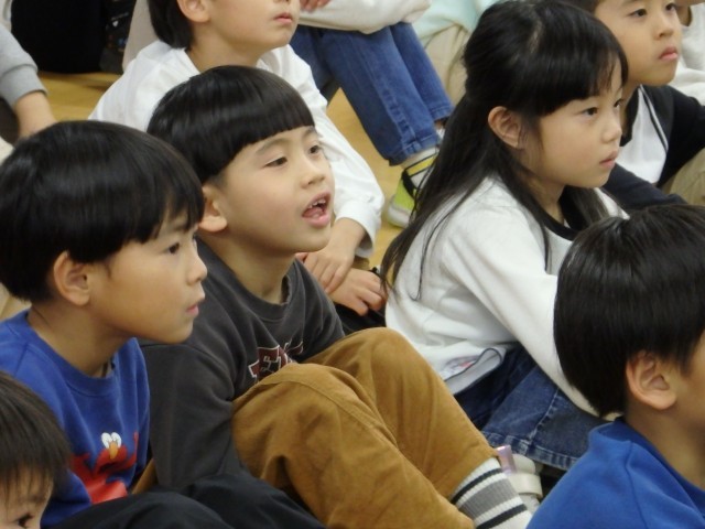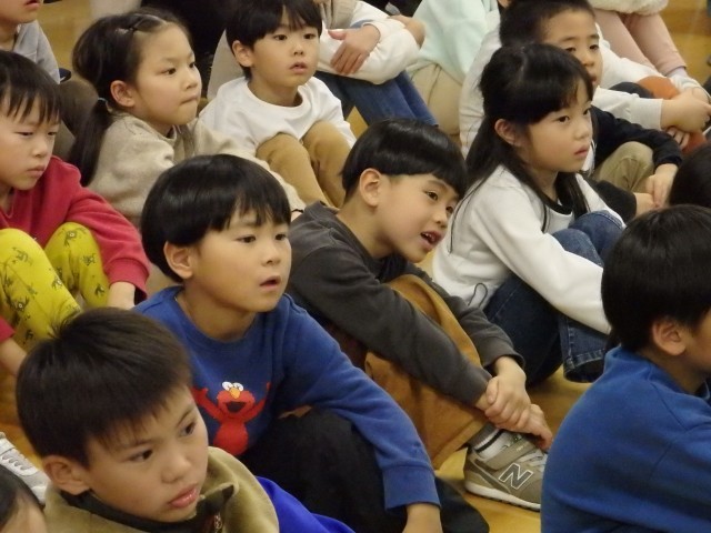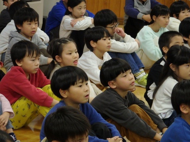 3連休明け、1,2年生は読み聞かせからスタートです。絵本に集中して、落ち着いた雰囲気で始まりました。