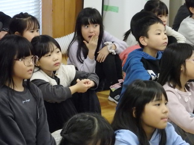 3連休明け、1,2年生は読み聞かせからスタートです。落ち着いた雰囲気でお話を聞いていました。