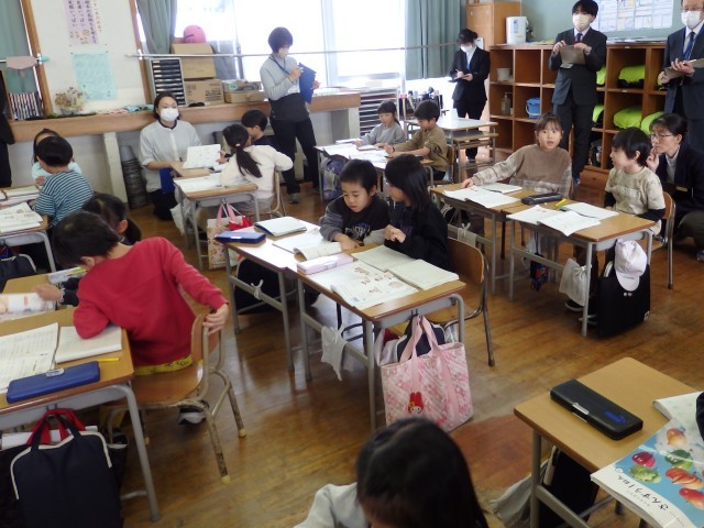 1年生の3時間目は国語の授業でした。「サラダでげんき」の学習です。隣の人とペアで、丸読みで交互に最初から最後までを音読していました。「スラスラとハッキリ読む」ことが目標です。とっても上手に読めている子がいました。
