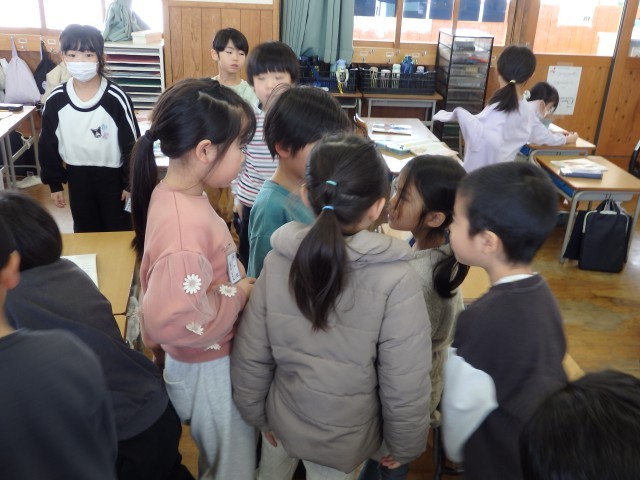 1年生の3時間目です。まずは3学期の学級委員を選びました。「やりたい!」と立候補する人がたくさんいましたので、1人ずつ「学級委員になって頑張ること」を発表していきました。「他の人の勉強が分からないところを教えてあげる」「いけないことをしている人がいたら注意する」など、学級委員として頑張ることを発表してくれました。