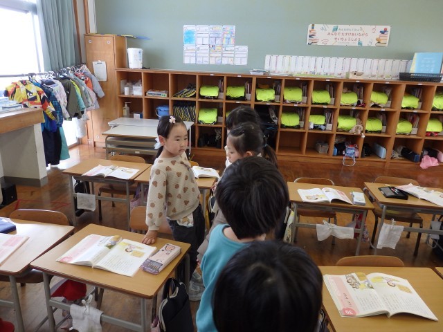 1年生の3時間目は読書の時間でした。好きな本を読んだり、友だちと一緒に読んだりしていました。「これ、小さいときに好きで読んでいた本だよ」と教えてくれた子がいました。中には、絵本ではなく字がいっぱいの本を読んでいる子がいました。