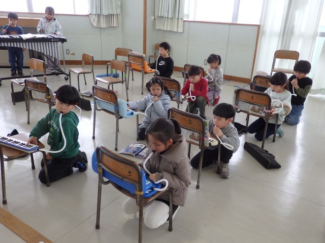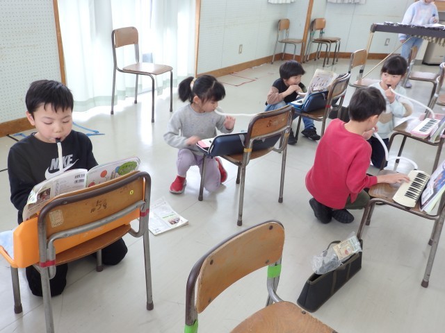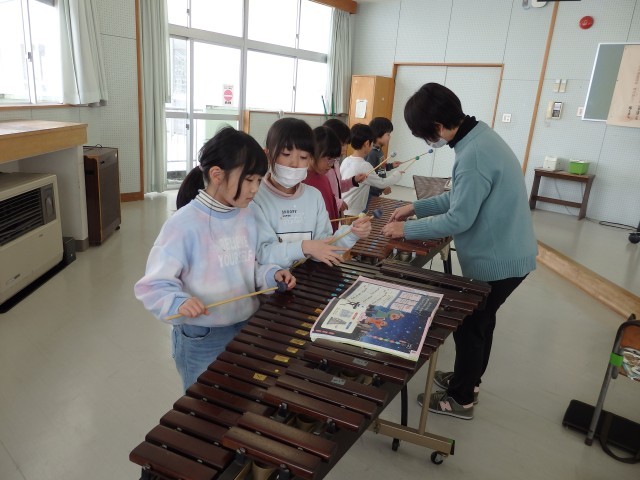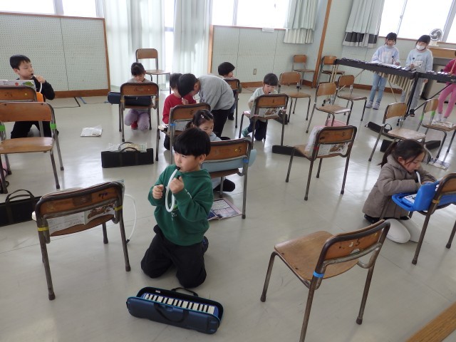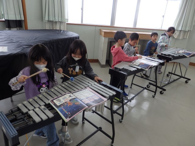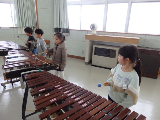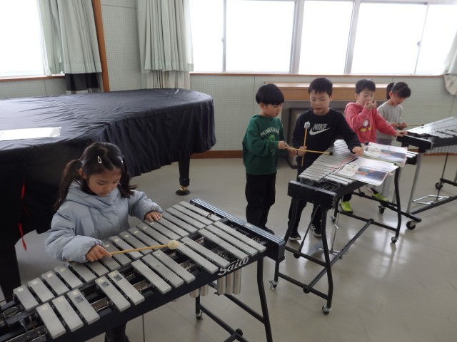 1年生の4時間目は音楽の授業でした。「きらきら星」の演奏する練習をしていました。木琴、鉄琴、鍵盤ハーモニカの3つに分かれて演奏します。練習をしてからみんなで合奏をしてみました。とても上手に演奏できました。楽器の役割を交代してセド、演奏です。とても楽しそうに演奏していました。