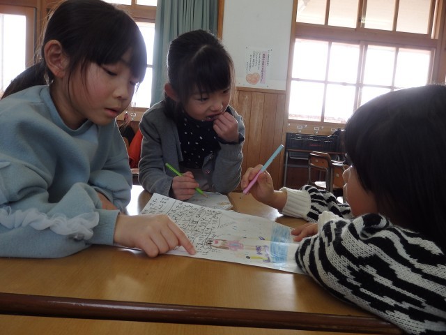 1年生の2時間目です。1月の家庭学習の計画を立てていました。ロッカーや引き出しの中にある漢字や計算のドリルなどを見ながら、毎日10分間の家庭学習で何をするか考えていました。学習でも1年のまとめとなる3学期です。授業では24人みんなで助け合いながら学習し、家に帰ってからは1人でしっかりと復習をして、1年生の内容を身に付けてほしいです。