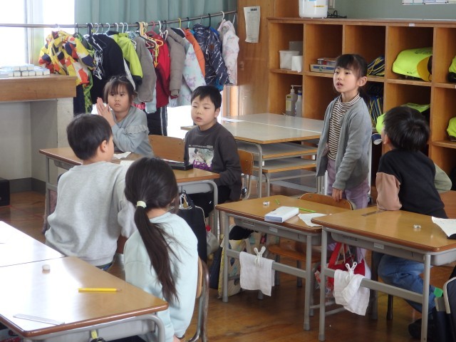 1年生の5時間目は国語や算数のドリルに取り組んでいました。友だち同士で教え合いながら取り組んでいました。「ねぇ、教えて」という声がたくさん聞こえてきました。和気あいあいとした雰囲気で、子どもたちも笑顔で学習を進めていました。