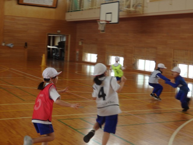 1年生の3時間目は体育の授業でした。ドッヂボールの学習です。4チームに分かれて試合をしました。前半、片方のチームは内野、もう片方のチームが外野で行い、後半は入れ替わります。そして、ボールが当たったら1点というポイント制ですので、ずっと全員で試合を続けられます。勝っても負けても楽しく、最後は笑顔で整列して握手を交わしました。