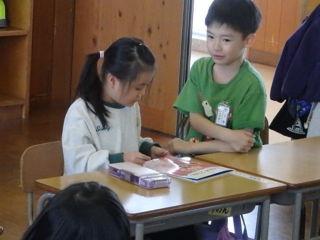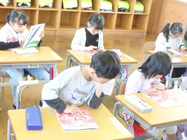 1年生の国語の授業、後半は図書室で読書をしました。好きな自動車や恐竜、星の図鑑を選んで目を輝かせて見ている子、名探偵コナンシリーズや「○○のひみつ」というマンガの本を選んで「読んでみたかったんだ」という子、怖い絵本を見つけてみんなに見せている子などがいました。たくさん読んで、本に親しんでほしいです。