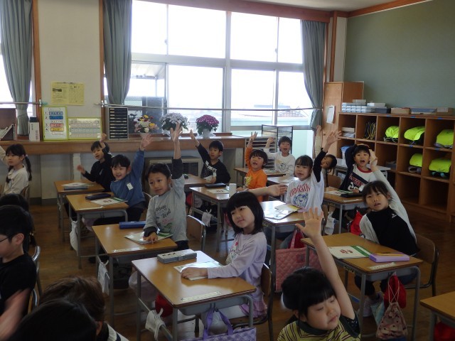 今日の時間目は学習参観でした。1年生は国語の授業で書いた作文「1年間で一番楽しかったこと」を発表しました。手を挙げて発表していきますが、緊張からなのか、それともお家の人が来るのを待っているからなのか、いつもの勢いがありませんでした。それでも全員がみんなの前で堂々と発表することができました。発表を聞く人たちもしっかりと目で話を聞くことができました。初めと終わりに拍手をする姿がいいですね。