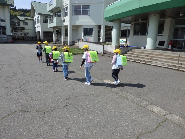 1年生は今日から23日まで給食後に下校となります。帰る方面ごとにまとまって下校しました。