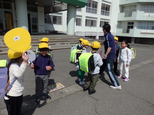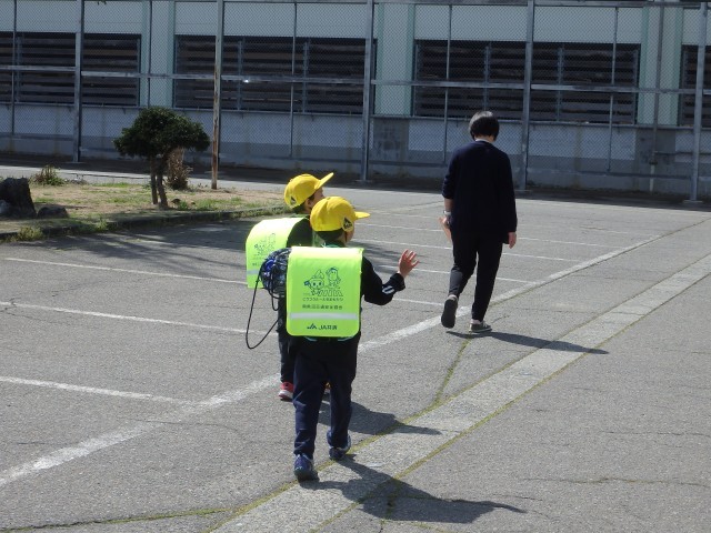 1年生は13日(月)まで授業3時間で下校になります。教室で方面ごとに集まって並ぶ練習をしてから、玄関前に集まりました。先生たちが方面ごとに一緒に歩いて下校指導を行いました。「さようなら」と元気なあいさつとハイタッチをして帰って行きました。また明日!
