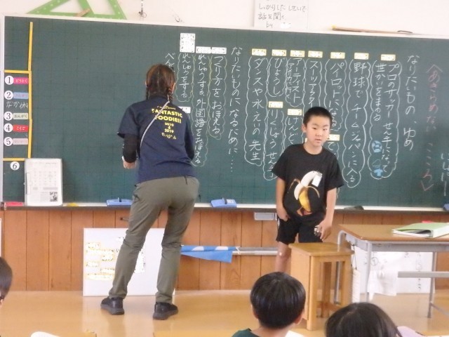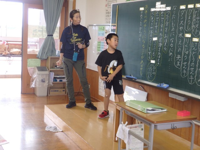2年生の1時間目は道徳の授業でした。「ぼくのゆめ」という資料を読んで「夢の実現」「困難に負けない心」について考えました。「主人公はダンスを習っています。でも、なかなか上達しないのでやめようかと思っています。そんなある日、リオ・パラリンピック閉会式でダンスをした大前光市さんという人の体験教室に行って・・・」という資料です。自分の「将来の夢」や「夢を叶えるためにどうするか」ということについて発表していきました。野球やサッカーの選手、パイロット、電車の運転手、ケーキ屋さん、美容師などいろいろな夢が発表されました。そして最後に、明日実施する持久走大会を例にして「あきらめそうになったときにどうするか」を考えました。「くじけそうな自分に勝つ」「自分のめあてに向けて頑張る」などの素敵な意見が出されました。
