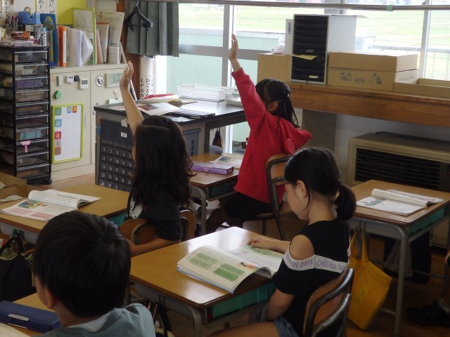 2年生の1時間目は国語の授業でした。昨日の授業では、自分が好きな本についておすすめポイントを伝えて紹介していましたが、今日はまず「話し合いのポイント」を学びました。「質問をする」「あいずちをうつ」「感想を言う」「相手のことばを繰り返す」などがあげられ、また質問するときには「どうして?」「どんな?」という質問をすると、相手も話しやすくなるし、自分ももっと聞きたくなることを学びました。その後、図書室へ行って、先生が好きな本のおすすめポイントを紹介し、読み聞かせを行いました。
