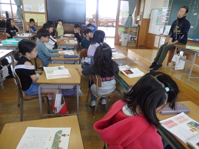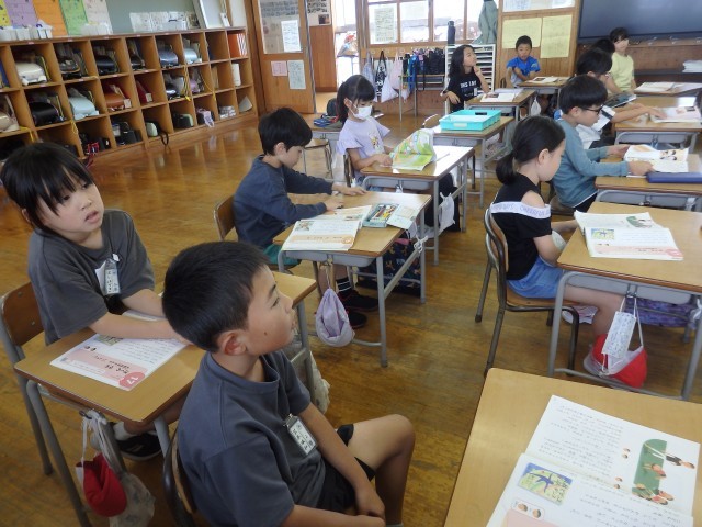 2年生の5時間目は図書室で読書の時間でした。自分が好きな本を1人で、または友だちと一緒に読んでいました。図書室なので小さな声でしたが、上手に音読しながら読んでいる子がいました。