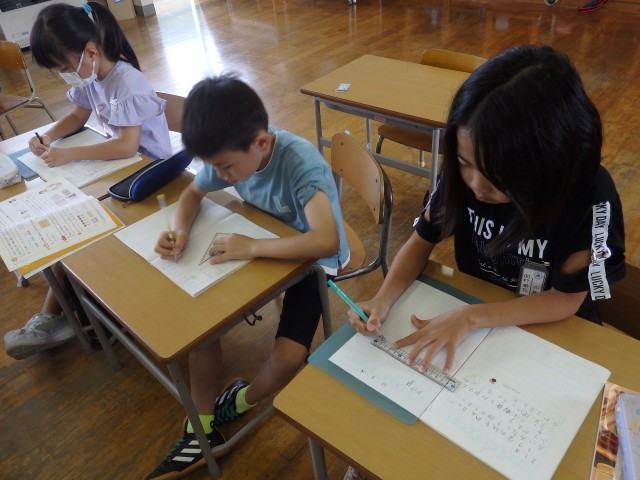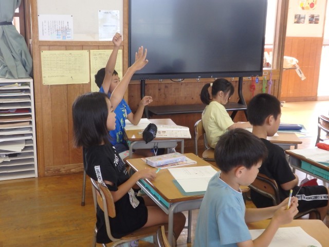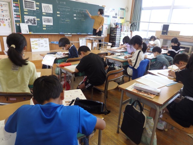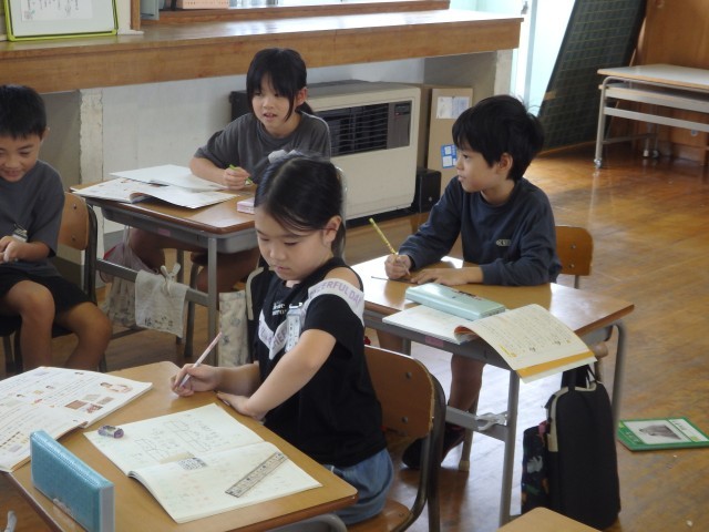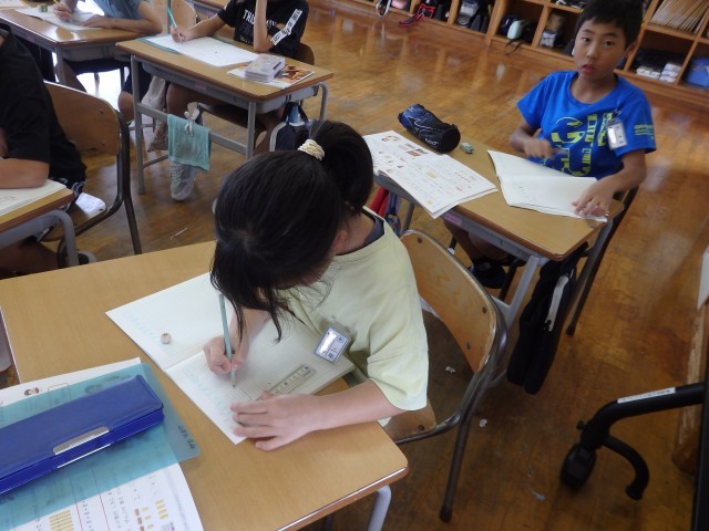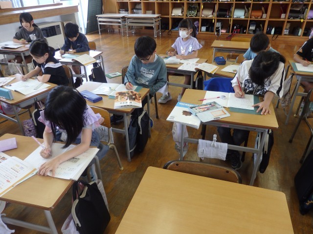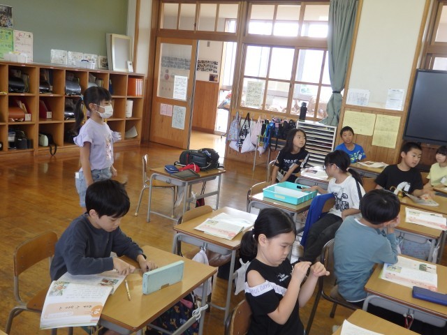 2年生の4時間目は国語の授業でした。これまで学習した内容についてのプリント学習に取り組んでいました。みんなが集中して取り組んでいました。