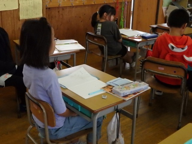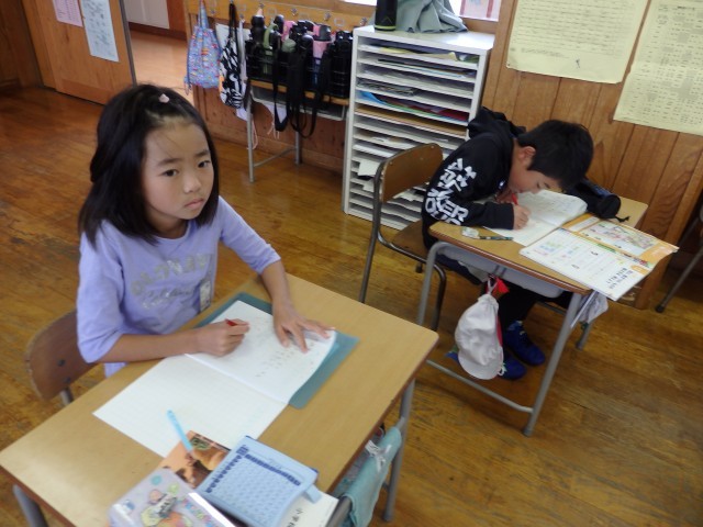 2年生の4時間目は国語の授業でした。これまで学習した内容についてのプリント学習に取り組んでいました。みんなが集中して取り組んでいました。