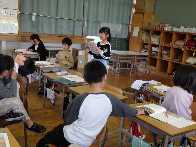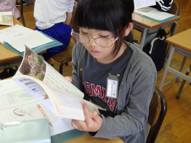 2年生の5時間目は図書室で読書の時間でした。自分が好きな本を1人で、または友だちと一緒に読んでいました。図書室なので小さな声でしたが、上手に音読しながら読んでいる子がいました。