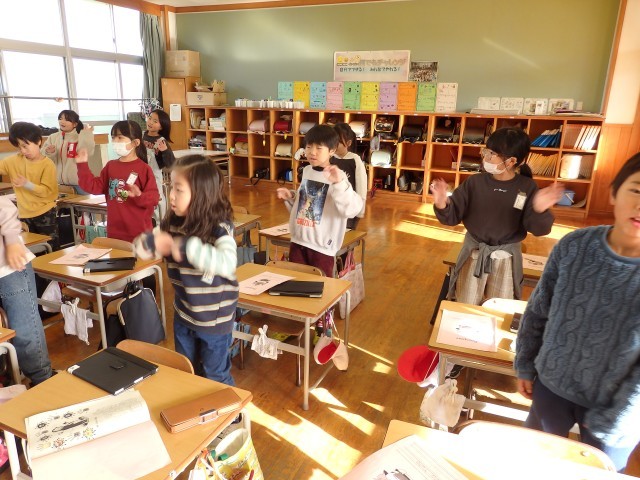 2年生の3時間目は学習発表会のステージ練習でした。体育館の後ろまでセリフが届くほど大きな声で言える人が増えてきました。本番まであと少し。頑張れ!全員でのダンスが楽しそうでした。