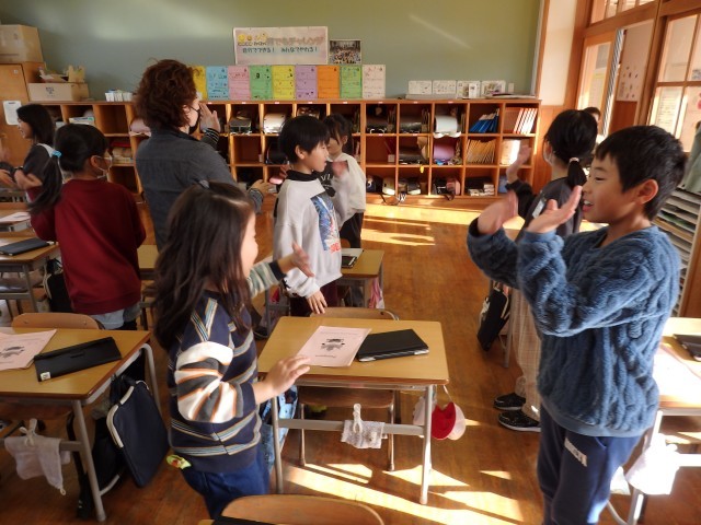 2年生の5時間目は国際科の授業でした。まずはALTの先生と「Hello, How are you?」という歌を歌いました。どんどんペアを変えながら「Hello. How are you?」と歌って相手の子に問いかけていました。その後、今日の学習「1~12までの数」です。トランプで「ババ抜き」をしました。2枚そろって場に出すときに、数字を英語で言っていきます。どちらの活動もとてもいい笑顔で楽しそうに学習している子どもたちでした。